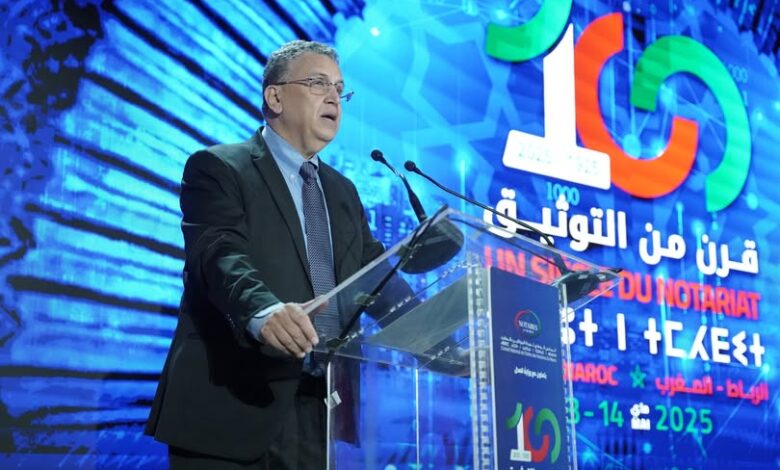 أما الأمين العام للمجلس الأعلى للسطلة القضائية، منير المنتصر بالله، فأكد أن “مهنة التوثيق تقف اليوم على عتبة قرن من الإنجاز كتب فصوله نساء ورجال بإخلاصهم ومثابرتهم ووعيهم بدقة المسؤولية المنوطة بهم”، مشيرا في هذا السياق إلى أنه يتم توثيق أكثر من 425 ألف عقد سنويا من قبل 1838 موثق وموثقة، ومساهمة سنوية تفوق 10 مليارات لخزينة الدولة، دون إغفال الدور الحيوي في دمقرطة الولوج إلى الخدمات القانونية بفضل التوزيع المتوازن لمكاتب التوثيق على كافة جهات وأقاليم المملكة.
