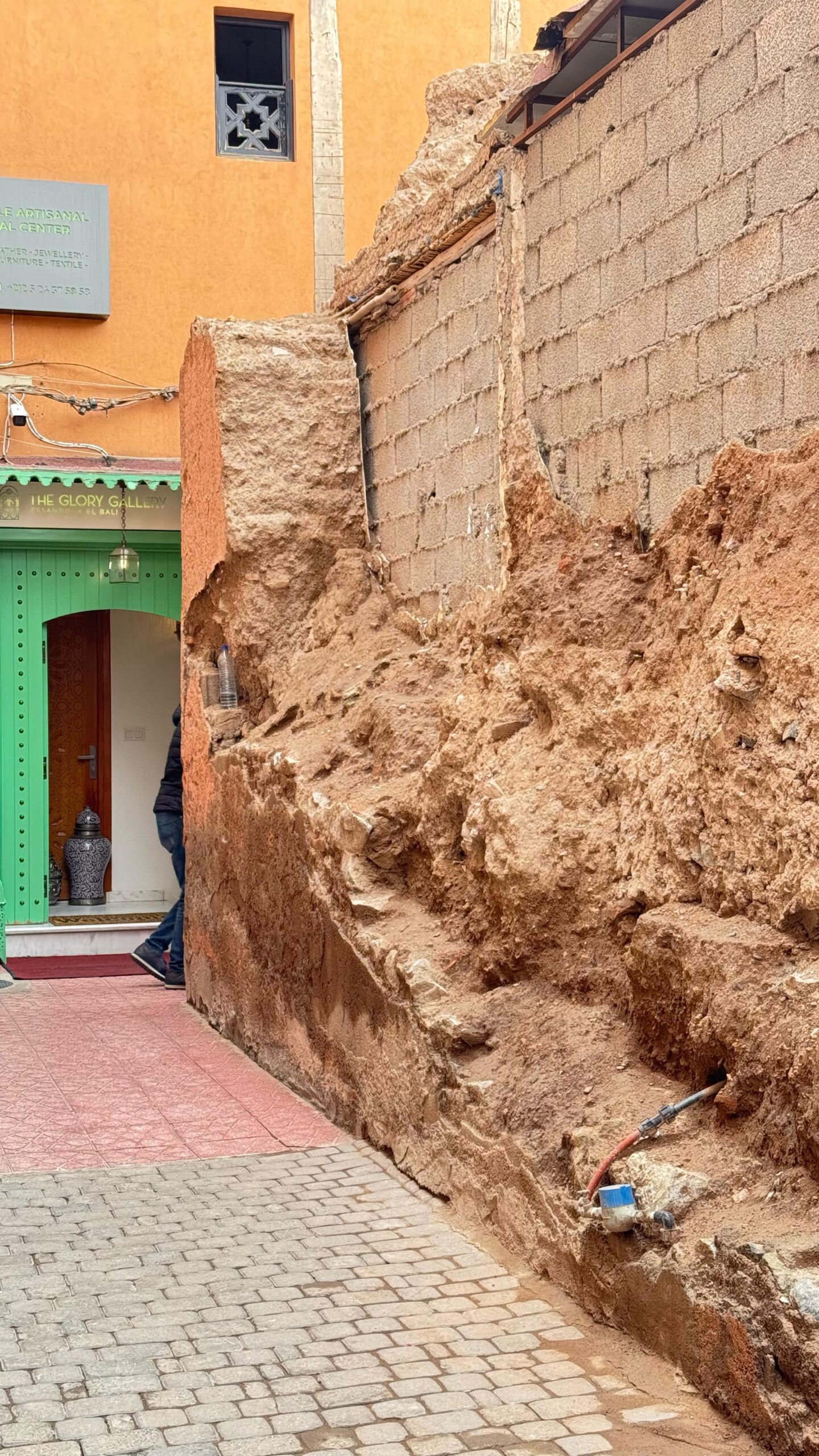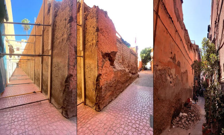 وقال مواطنون في اتصال بصحيفة “المراكشي”، إن السور الذي تداعت أجزاء منه بفعل قوة الزلزال وتسبب ركامه حينها في قطع حركة السير بالدرب المذكور، ومحاصرة ساكنة أحد المنازل الذين ظلوا عالقين بالداخل لمدة يومين، لا يزال (السور) مسنودا بأعمدة تطوّع بها مواطن يعمل في مجال البناء، دون أن يتم لحد الآن معالجة مشكل هذا الجدار رغم شكايات المواطنين للسلطات المنتخبة والمعينة.