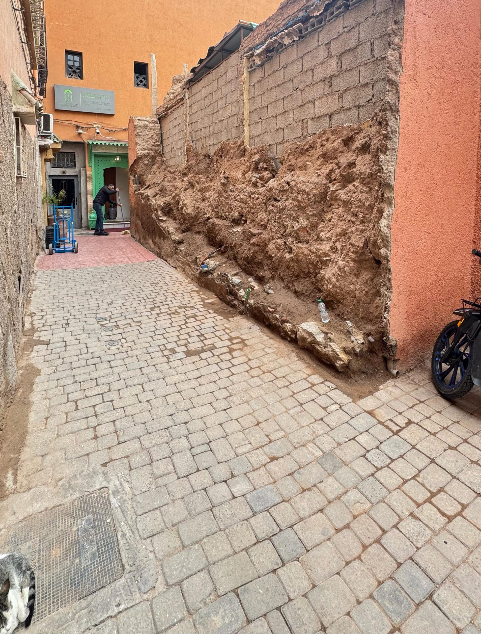 وكان أصحاب المحلات التجارية والمرافق السياحية المتواجدة بزنقة القباضة بحي رياض الموخى بالمدينة العتيقة لمراكش، وجّهوا رسالة إلى والي الجهة وعامل عمالة مراكش، فريد شوراق، بشأن المخاطر التي يشكلها جدار متهالك لبناية بدرب الصندوق البالي بمحاذاة دار الشباب رياض الموخى.
